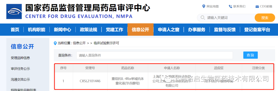2022年01月26日,中国国家药品监督管理局药品审评中心(CDE)公示,上海DB电子官网生物医药技术有限公司一款针对中重度哮喘治疗的核心药物LQ036——重组抗IL-4Rα单域抗体雾化液(毕赤酵母)的临床试验申请(IND)正式取得批准(通知书编号:2022LP00124),从IND受理到获批仅用2个月,此间无发补项。